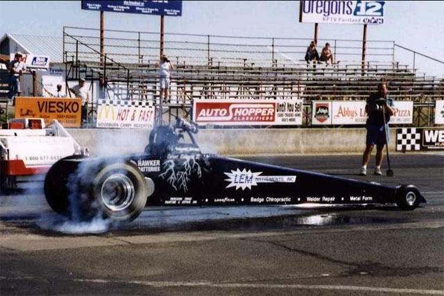 Current Eliminator 1/4 mile ET: 8.801 sec. Event: Silent Thunder 2000 Track: Sacremento, CA Driver: Dennis Berube Hometown: Laveen, AZ Class/Voltage Div: DR/A Website