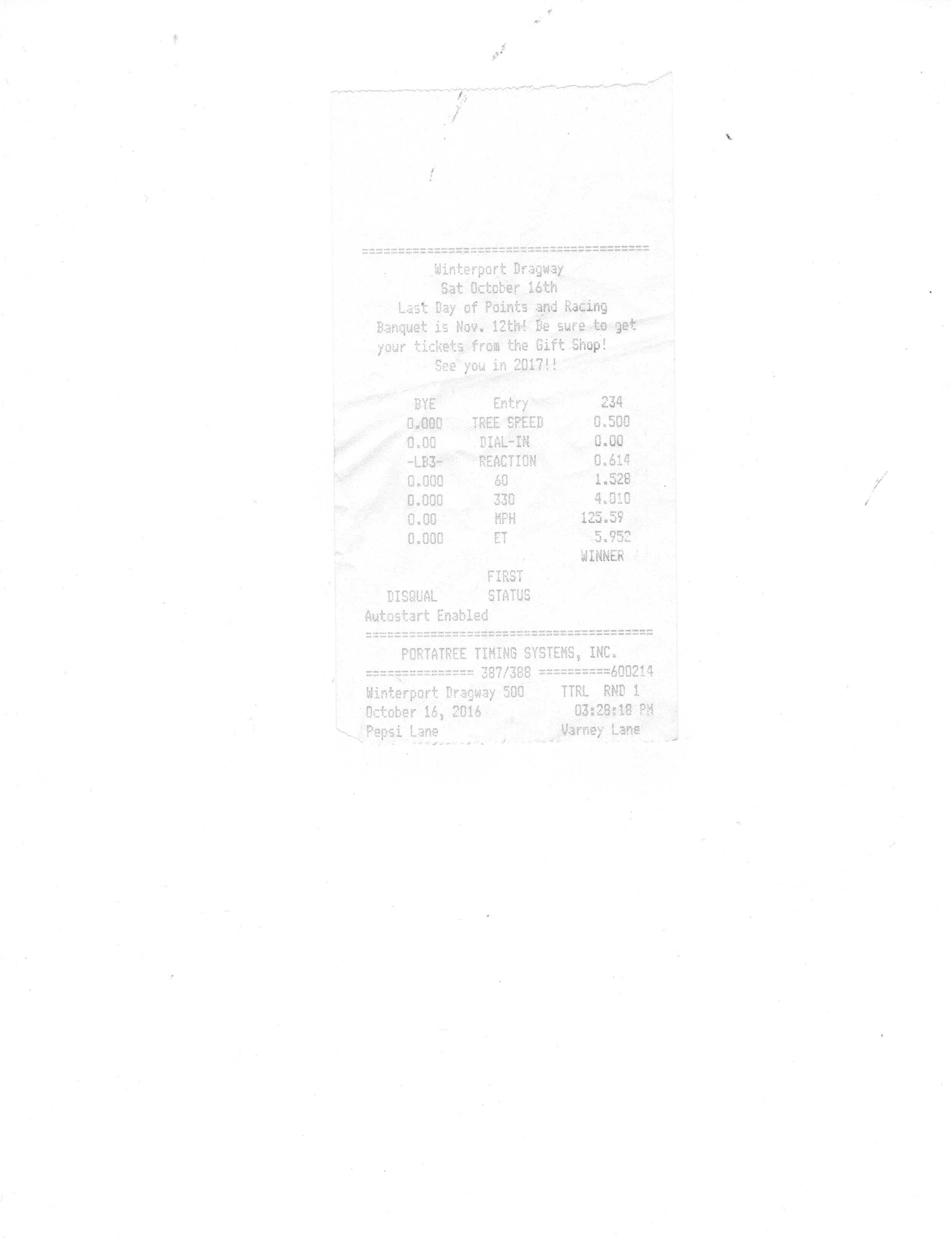 MatrixView Timeslip 60ft: 1.530 1/8 mile ET: 5.924 sec. Event: Test and Tune Track: Dragway of Magnolia Driver: Shawn Lawless Hometown: Youngstown, OH Class/Voltage Div: DR/A3 Website