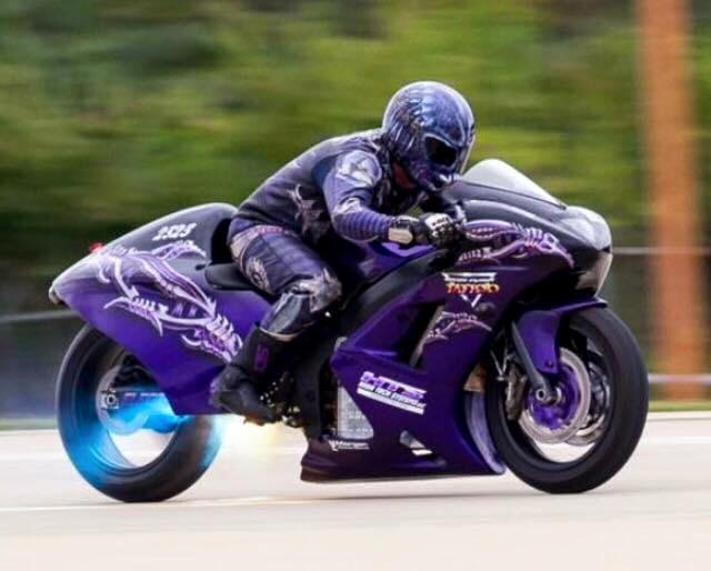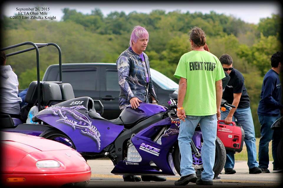 • Amazing pictures of Jeff Disinger's Electric Bike's speed run at the Ohio Mile Sept. 26th - 27th...That blue hue coming from the bottom rear was a combination of the electric motors nearly frying, and because of the copper and humidity despite having to replace the motor, it made for an awesome picture.  Let Jeff tell the story and he'd say, "...It's that  Power Glow!"  He had a 173 MPH recorded run, but his on board GPS speed tracker logged 178MPH! Awesome job Jeff!