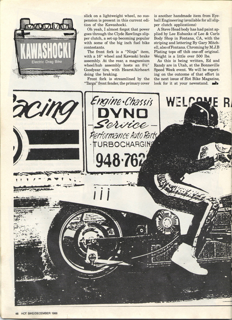 Ed Rannberg's "Kawashocki" in Hot Bike MagazineSixteen year's ago this month Ed Rannberg's legendary "Kawashocki"
