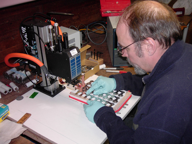 Bill Dubé stitching terminal connectors to each one of 880 total A123 cells