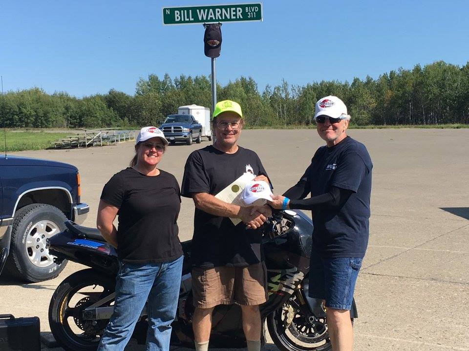 My wife Shari and I drove to the track on Thursday afternoon and we helped finish setup Friday morning. Racing started Friday afternoon and I made one 165 mph pass as a shakedown run. I experimented a bit with riding positions on this pass: everyone has opinions about what works best! I decided to focus on remaining as comfortable as possible without sliding back too far; this worked for me in July and I felt this was safest. Saturday had a noticeable headwind coming pretty much straight down the track. I worked Timing until noon then got relieved so I could make some runs. The LTA times at both the 1.0 mile and 1.5 mile and I ran a 191.3/196.4 mph on the first pass. I recharged and went out again an hour or so later and ran 195.3/199.8 mph into the same wind. The difference was that the warmer pack yielded higher power.