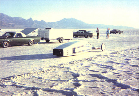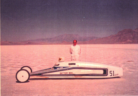 He drag raced "The Battery Box" for testing purposes in prepartion for a run at the Bonneville Salt Flats. There is a great picture of "The Battery Box" circa 1973 at Sacramento Raceway launcing against an altered 1957 Corvette. The Vette is wheelstanding and by the picture it looks as though "The Battery Box" has a lead on him.